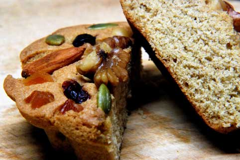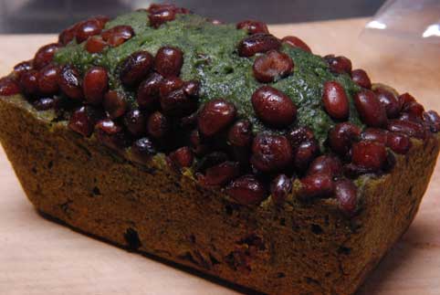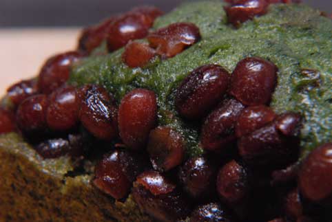 あずきがずっしりと乗っかっているへんぽこ茶屋のよもぎバウンドケーキは