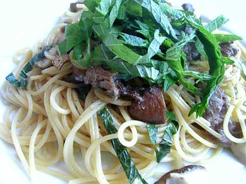 やっぱりこれも注文する和牛とシソの和風パスタ