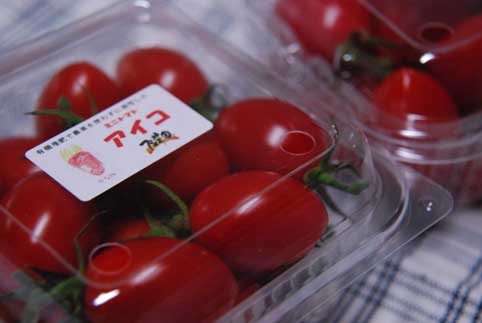 ぴかぴかに赤く輝く美味しい「アイコ」が販売されている。