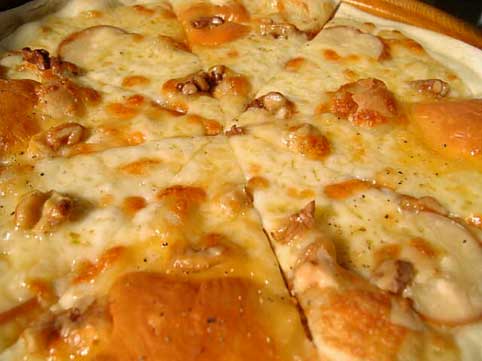 カリカリっとしたクルミの食感と、パリパリっとした生地、そしてトロリとのびるチーズに
