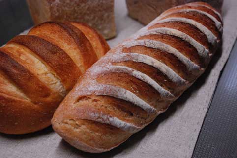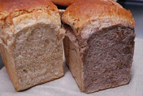 発芽玄米とクルミの天然酵母食パン(各450円)