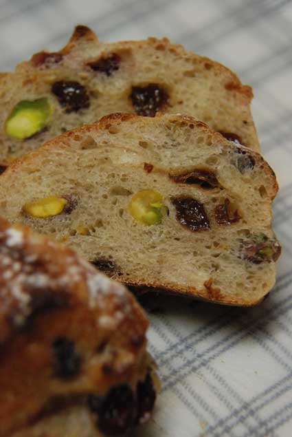 バゲット生地にレーズン、クランベリー、オレンジピール、ピスタチオが入ってて、