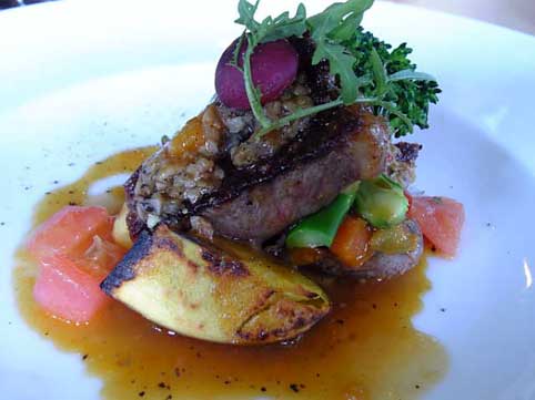ステーキに添えられた野菜は焼かれたり煮られたりしてて、