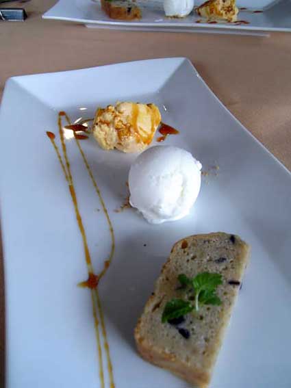 デザートのブルーベリーのケーキ、ヨーグルトのアイス、かぼちゃのプリン