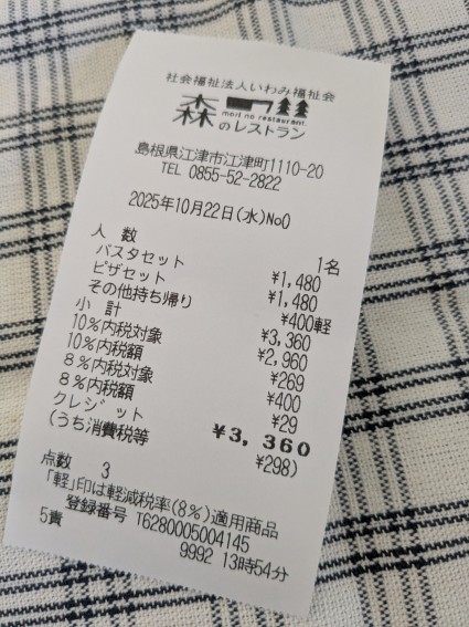 午後の診察は16時からだったので森のレストランでお昼にした。