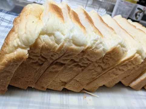 オーナーさんが、「〇〇さんです。食パン1本と半分です。」と