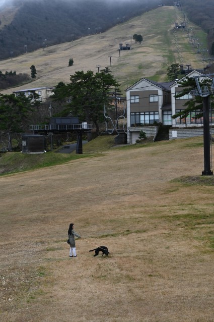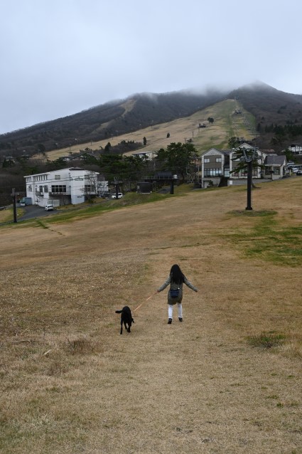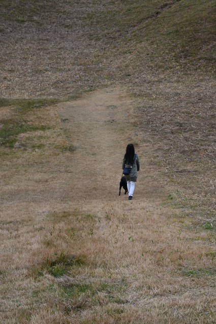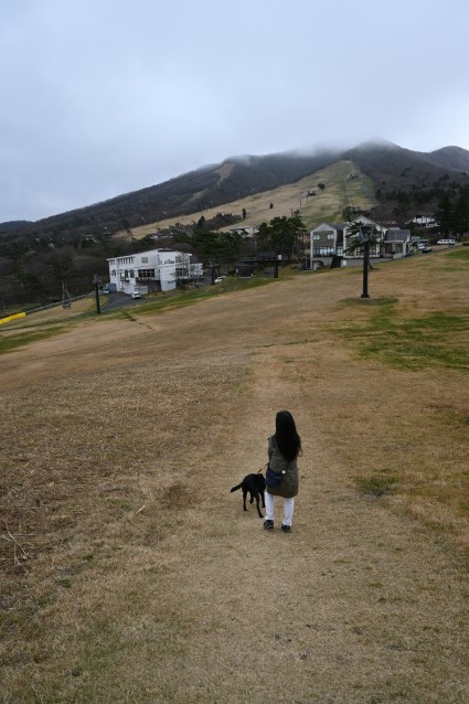 わさびと急な斜面を意味なく登ってみる。
