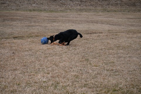 自分の顔より大きなボールに食らいつき!!