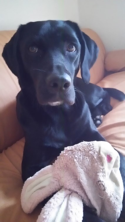 お顔がクタクタになったウサ子さんがお気に入りのわさび。