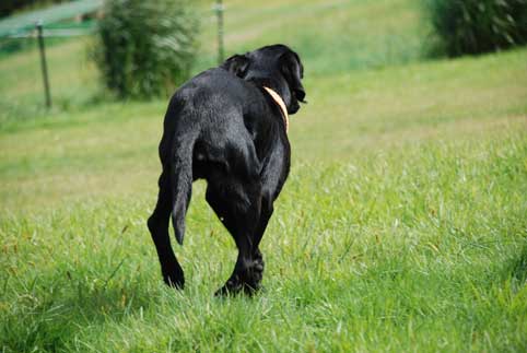 走っているわさびのお尻。
