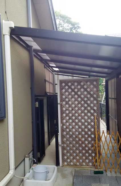 透水性のタイルを敷いて、屋根は陽が当たらないようにコンパネつけて