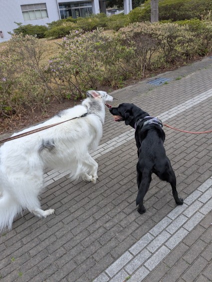 これからの散歩は気を付けないとねとぞっちゃんママと話をする。