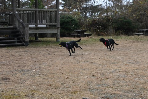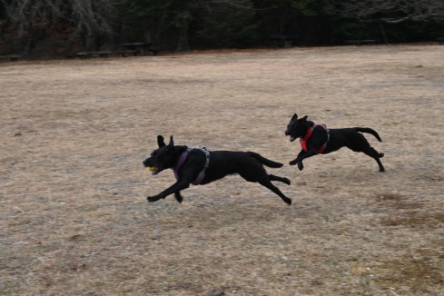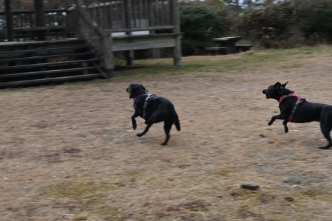 私たちがボールを投げなくても2匹はこうして走り回り、