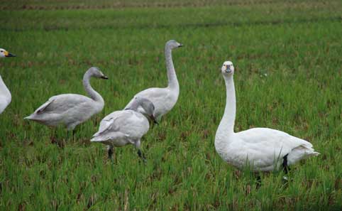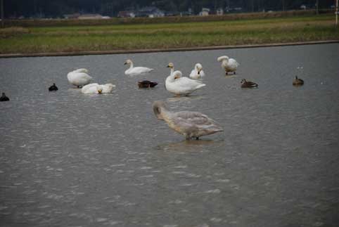 大人の真っ白な羽の色とは違って、子供はグレーな色をしている。