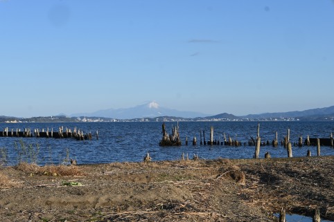 宍道湖から大山が見える。冬の空気が澄んだときに見える風景だ。