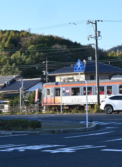 タイムリーにばけばけ電車@一畑電車が目の前を走っていく。