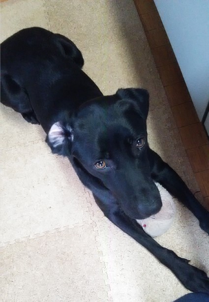 トコトコやってきて私の邪魔になるよう足元にフセをする。