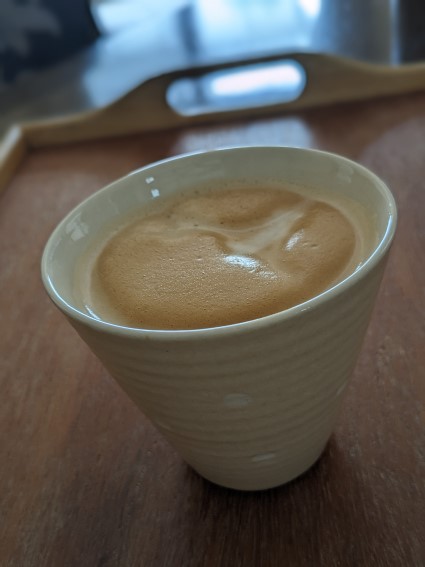 朝、優しい妻が入れてくれたコーヒーを飲む。