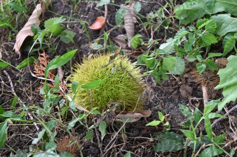 道の横にはたくさんの栗のイガ