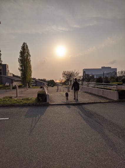 気持ちいい晴れの休日の終わり、わさびと散歩をする。