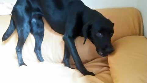 テーブルの周りをダダダっと走ってきてクルンと回って前の手だけフセ