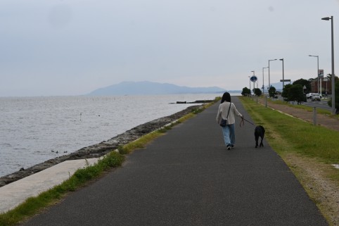 宍道湖沿いの歩道を行ったり来たりしながら水鳥を眺める。