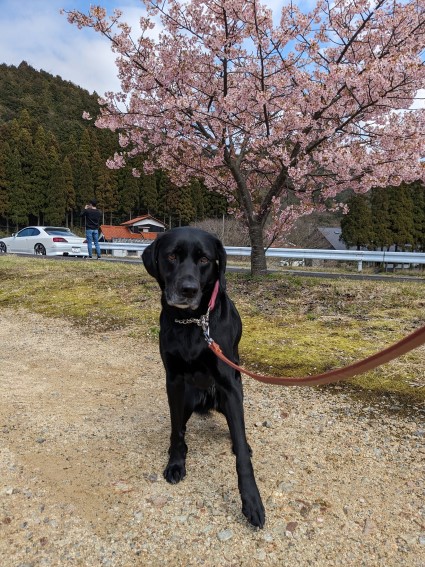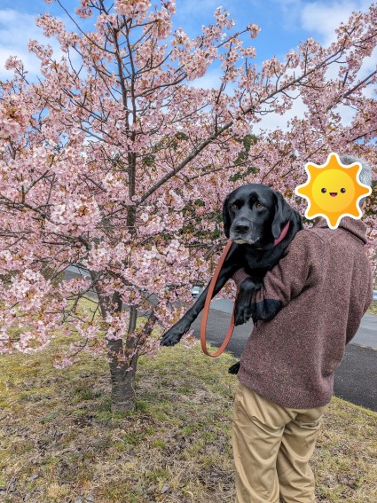 帰りに桜の花がとてもきれいに咲いていたのでわさびと撮影