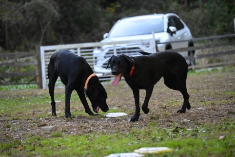 陽だまりで暖かなドッグランに少しずつ山々の影が伸びてきて