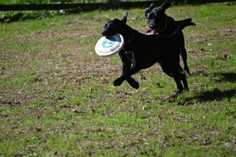 慌ててフリスビーを追いかける。。。