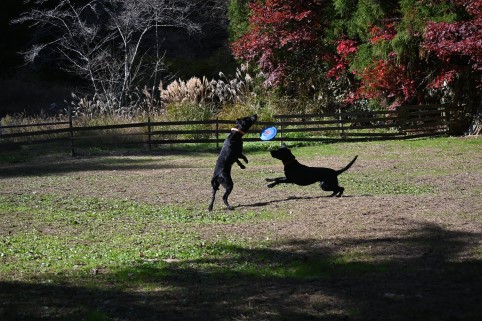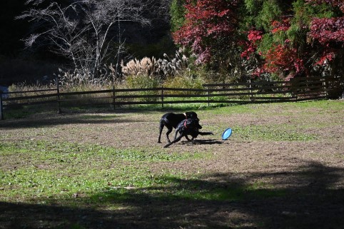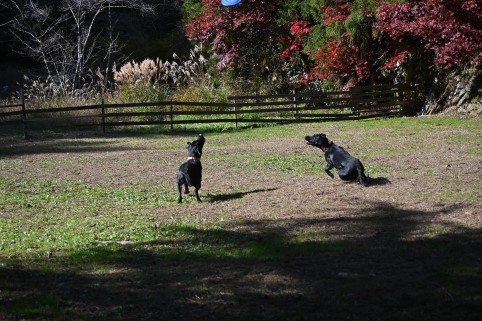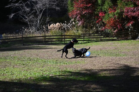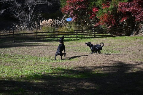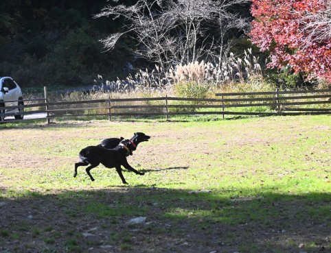 mocoちゃんちの車の後を走って着いたのは広い広いドッグラン