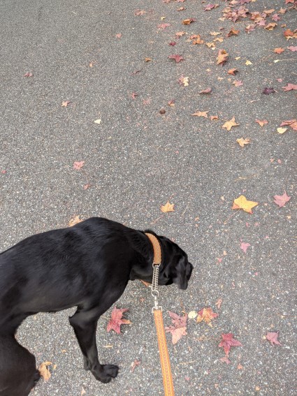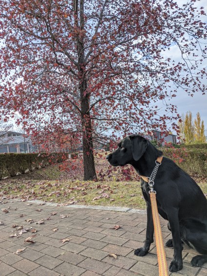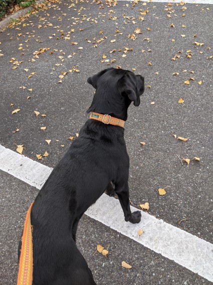 相変わらず、風に舞う落ち葉を猛ダッシュで追いかけている。