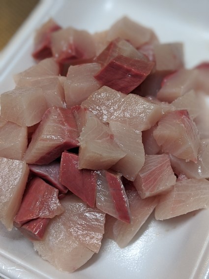 ブリが安かったので、わさびのごはん用に切ったもの。