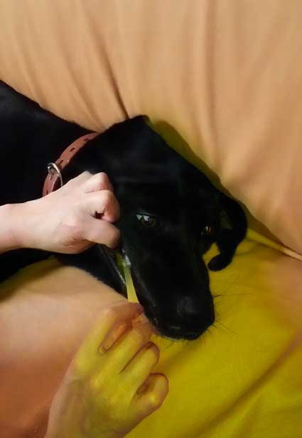ああ、歯磨きをするんだと思うのか、自らソファにゴロンと横になる。