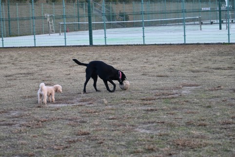 そして倉庫から野球ボールも持ってきてサッカーボールを追いかける。