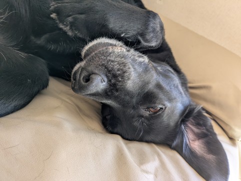 ソファで寝ているわさびに遊ぼ!!と声をかけると・・・