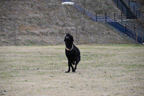 途中、ポールにリードが絡まってわさびが拒否反応を示す。
