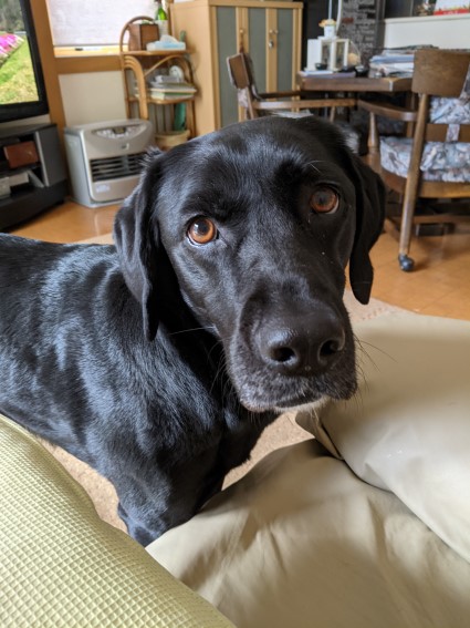 自分が黒くて大きな犬ってことを考えずに撫でて攻撃をするわさび。