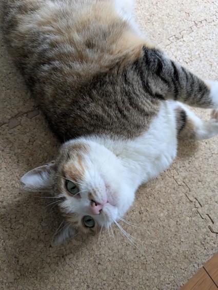 今までほとんど鳴かなかったのに私たちを見上げてはニャー