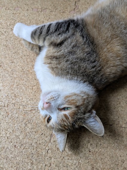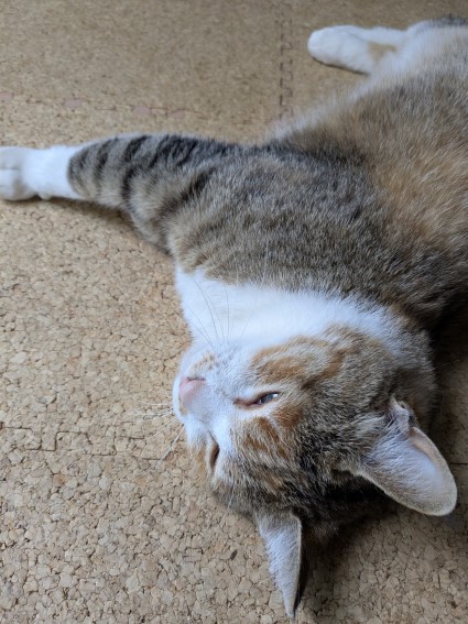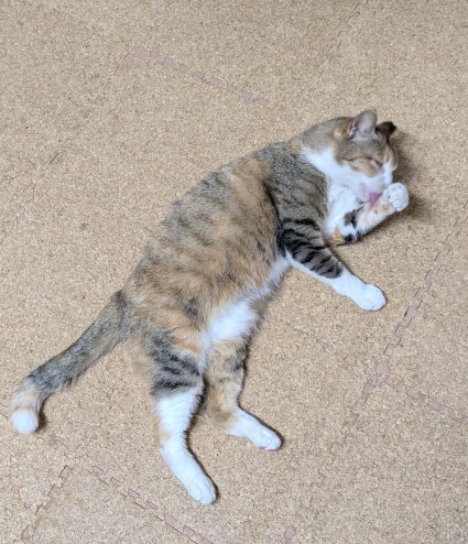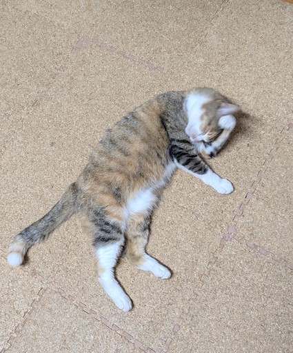 今日も自由気ままなシャー少佐は床の上でゴロンゴロン