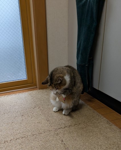 おもちゃを与えてみた。 なんとなく興味ありあり??
