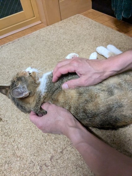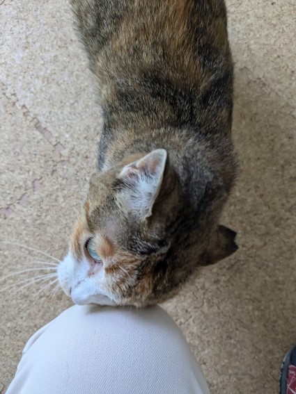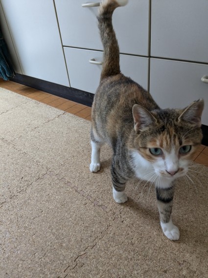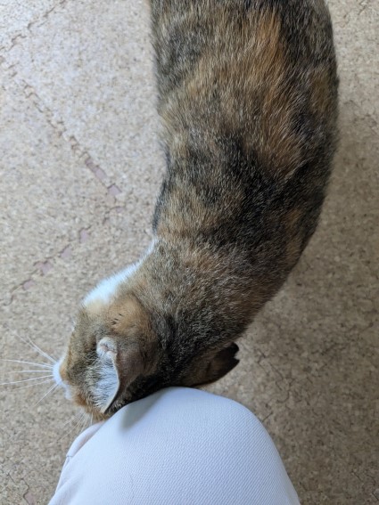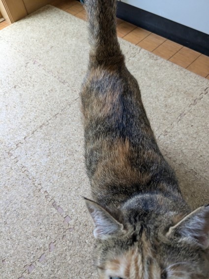側に私がいないとダメで、少しでも離れるとニャーニャー鳴いて呼ぶ。