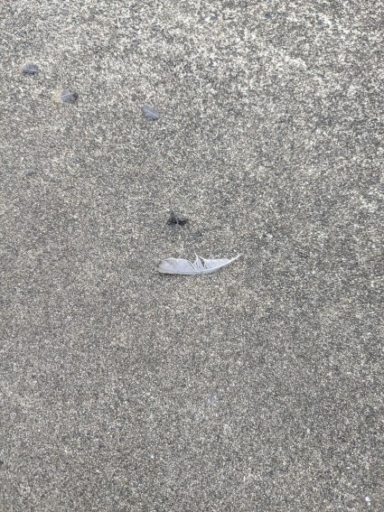 今朝、勝手口を開けると、そこには無数のふわふわな羽が散らばっていて、