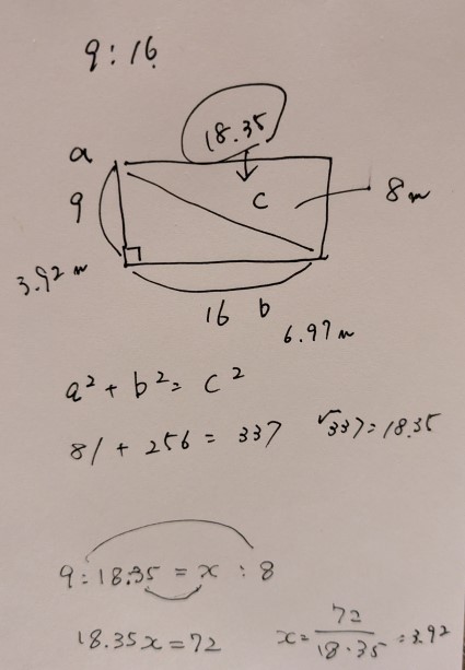 日本最大の液晶テレビの斜辺が8mと話したところで紙に書いてみる。