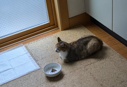 フードにチュールを混ぜて食べているときに少しずつ少しずつ・・・