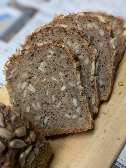 ヒダカさんのこのヒマワリの種のライ麦パンをカリカリに焼いて、
