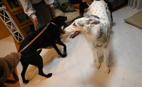 我が家へ来てくれたぞっちゃんを遊びに誘うわさび。