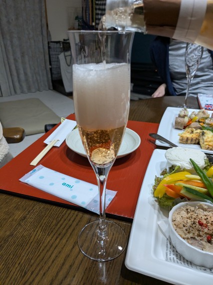 さて女子会@ではなくワイン会だけど、最初はピンクのスパークリング