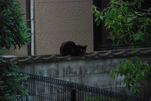 吠えてるかるびを挑発するように塀の上で涼しげな顔をしながら眺めてる。