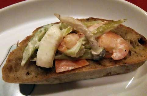ビネガーのきいたマヨネーズで和え、カンパーニュに乗せた。