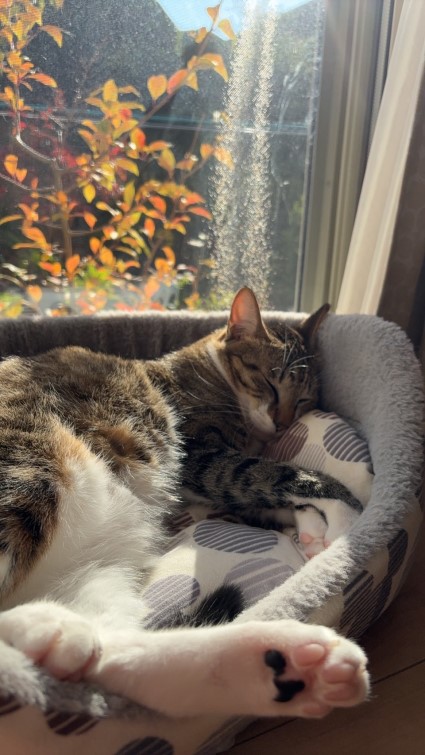 陽だまりの中で眠るてとのぷにぷにな肉球がたまりませんな~~。